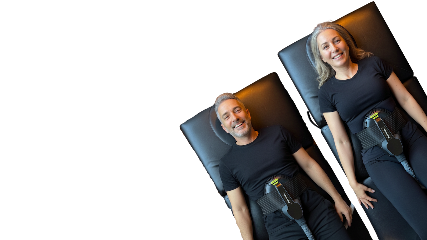 Es entstehen supramaximale Kontraktionen, bei denen fast 100 % der Muskelfasern gleichzeitig arbeiten – im Vergleich zu nur 30–40 % beim normalen Training. In einer Session kommen so rund 20.000 Kontraktionen zusammen, die Muskeln tiefgreifend und gleichmäßig beanspruchen – ganz ohne Gewichte oder Belastung der Gelenke.
